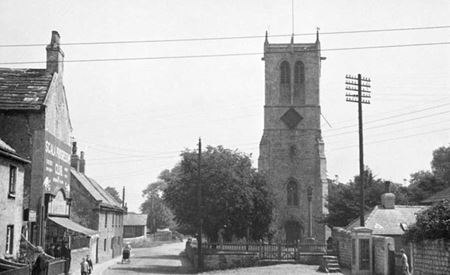 Church. C13 and C14 with C15 and C16 alterations and additions. Rubble and ashlar limestone, ashphalt roofs. West tower, 3-bay aisled nave with north and south porches, 2-bay chancel, north vestry. Tower: C14 lower part has chamfered plinth and diagonal, offset buttresses flanking ogee-headed west door with hoodmould; quadrant-moulded 2-light window above with trefoil-headed loop over. Offsets below and above lozenge- shaped clock. Perpendicular upper stage has paired, 2-light belfry openings with cusped, blind panels beneath louvred upper lights, shared hoodmoulds. Blind tracery to parapet with gargoyles and pinnacles. Nave: chamfered plinth; buttresses, diagonal to west. South porch has timbered gable and stone roof; quadrant-moulded doorway within has hoodmould. Aisle has square-headed, double-chamfered 3-light windows, 4-light window on right; string course beneath embattled parapet. 4 clerestorey windows of 3 Tudor-arched lights in square-headed recesses; parapet, as aisle, has pinnacle bases. North side similar: ashlar porch with gable plaque dated 1630, quadrant-moulded, pointed arch to door within. Chancel: south priest's door flanked by buttresses and by Y-tracery, double-cavetto-moulded windows with hoodmoulds. West buttresses now built onto by aisle end walls. 2-storey north vestry with 2-light mullioned window beneath pointed single light, shallow-pitched north gable. Flanking 2-light windows to chancel, renewed. Angle buttresses flank early C20, 4-light east window within jambs of C13 opening. Plain parapet with copings, truncated east gable.